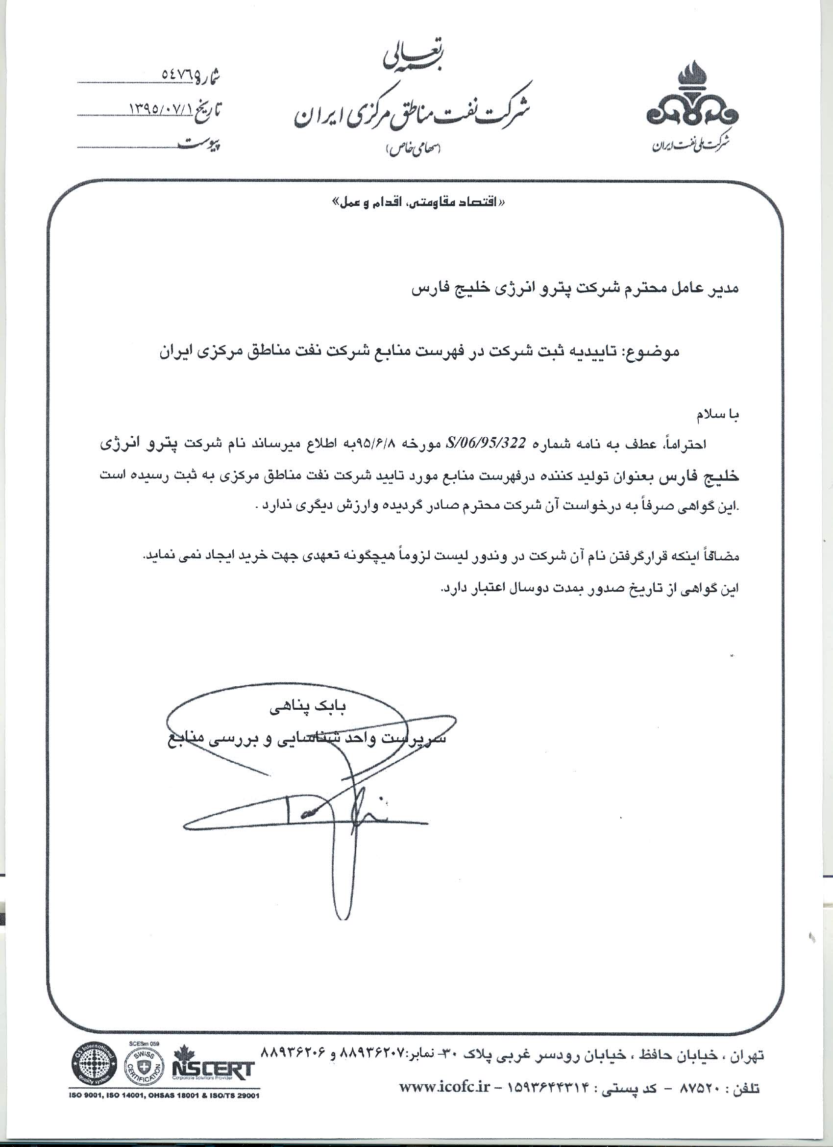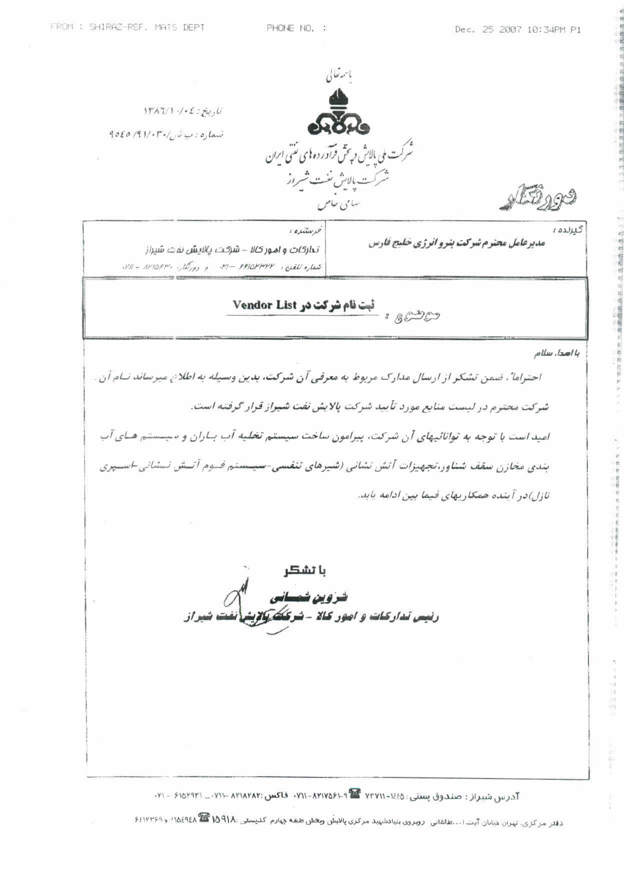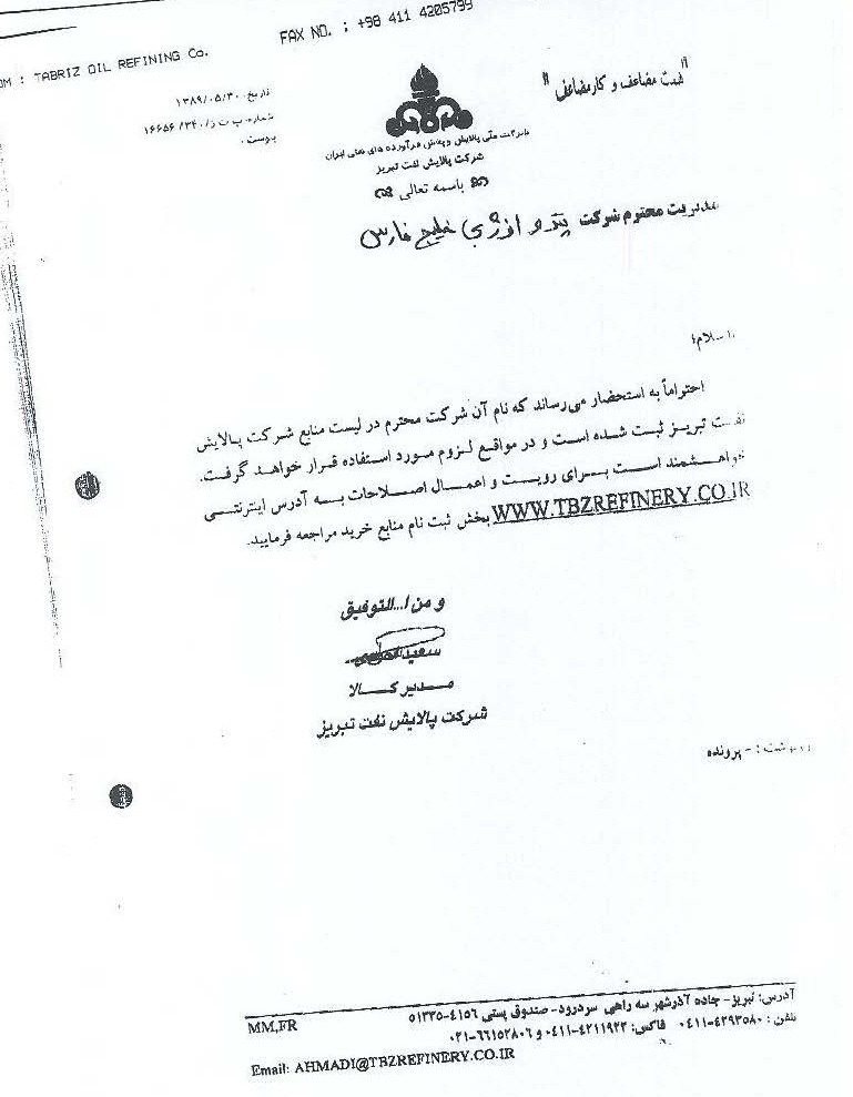 Bandar Abbas Oil Refinery Satisfaction Letter