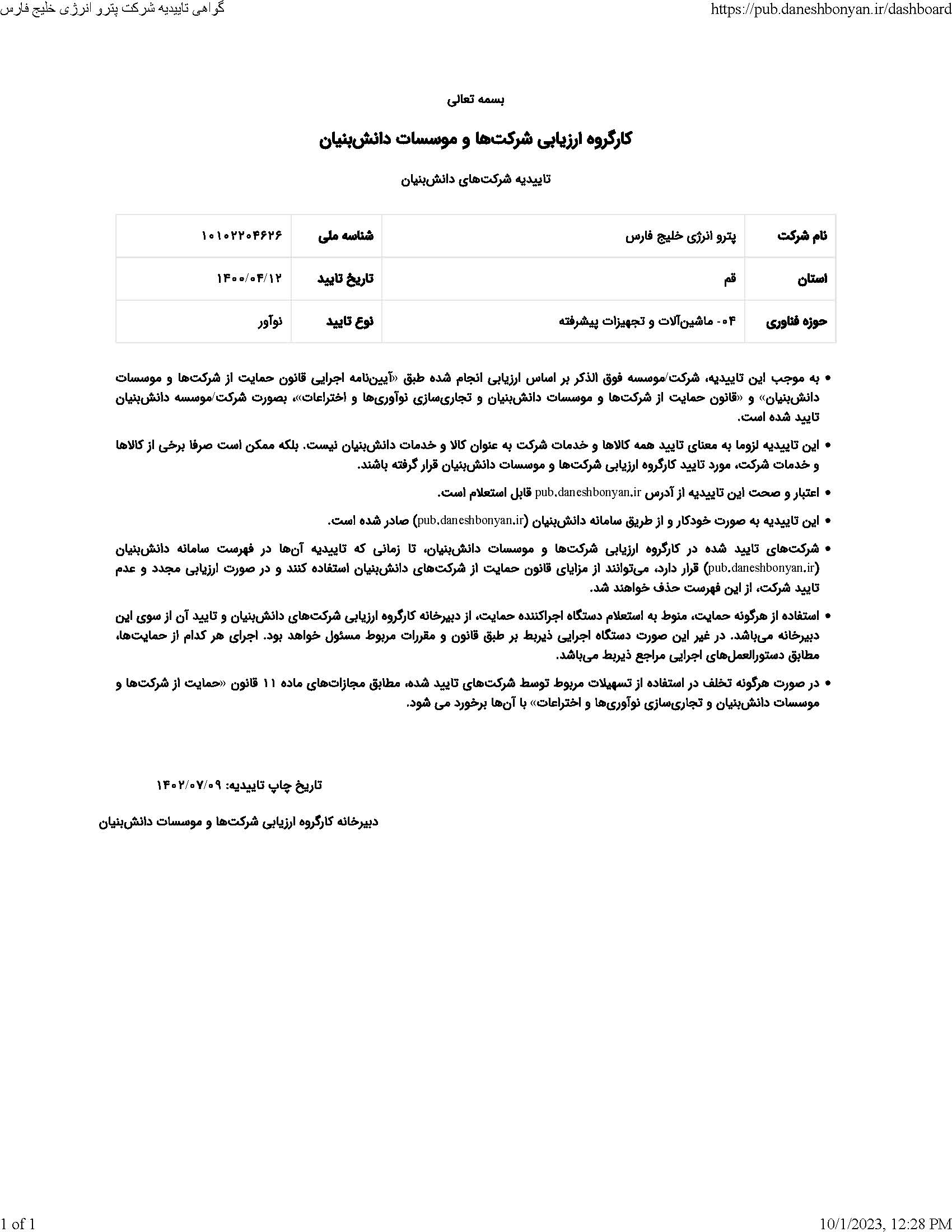 Gostaresh Farayand Sharif Company Satisfaction Letter